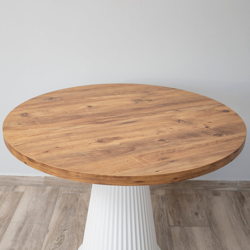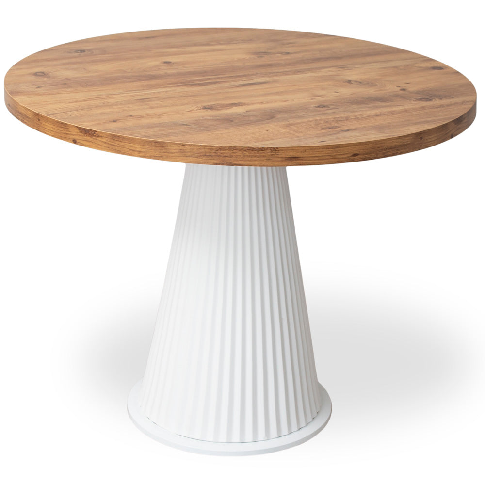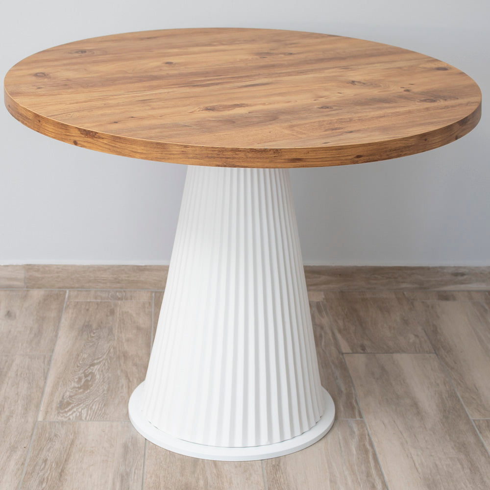 MASA DINING INNA CON ALB & WOOD CU RIFLAJE Ø110CM
