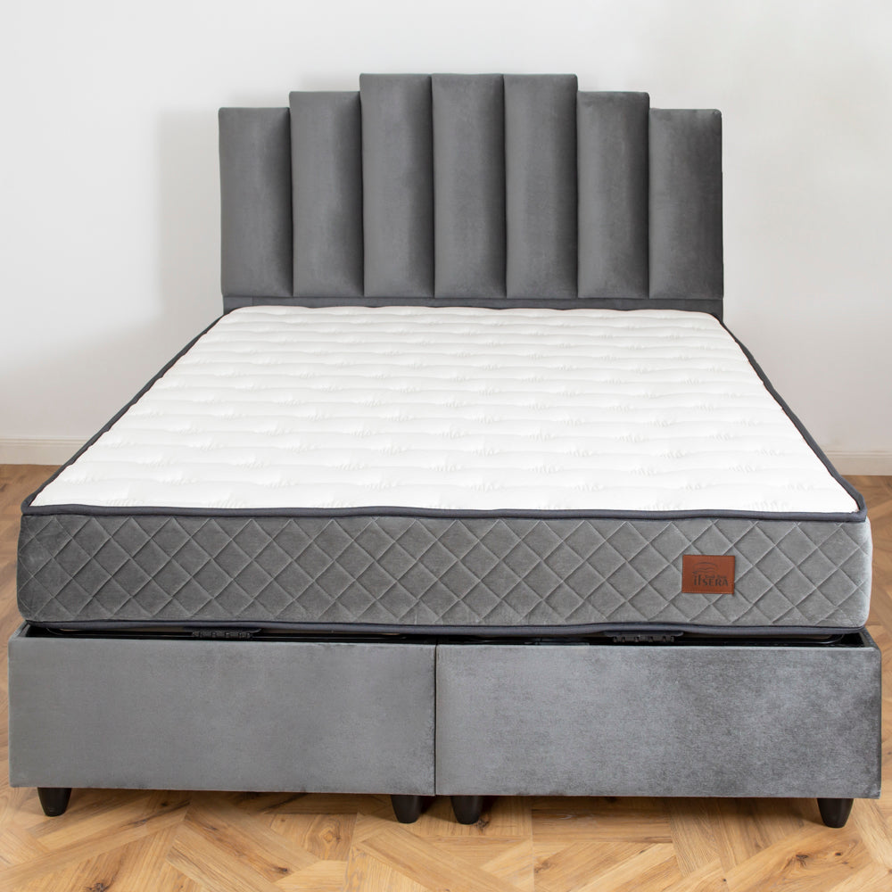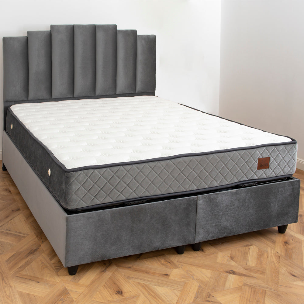Patul este realizat din materiale de înaltă calitate, tip catifea. Are un design special realizat pentru a vă oferi maximum de confort în fiecare seară. Este mai mult decât practic și confortabil, fiind o piesă de bază în amenajarea dormitorului tău, decorându-l cu rafinament și bun gust. O dată amplasat, te poți bucura de o atmosferă primitoare și intimă, care te invită la ore întregi de somn odihnitor. Lada de depozitare este foarte practică și ușor de accesat.